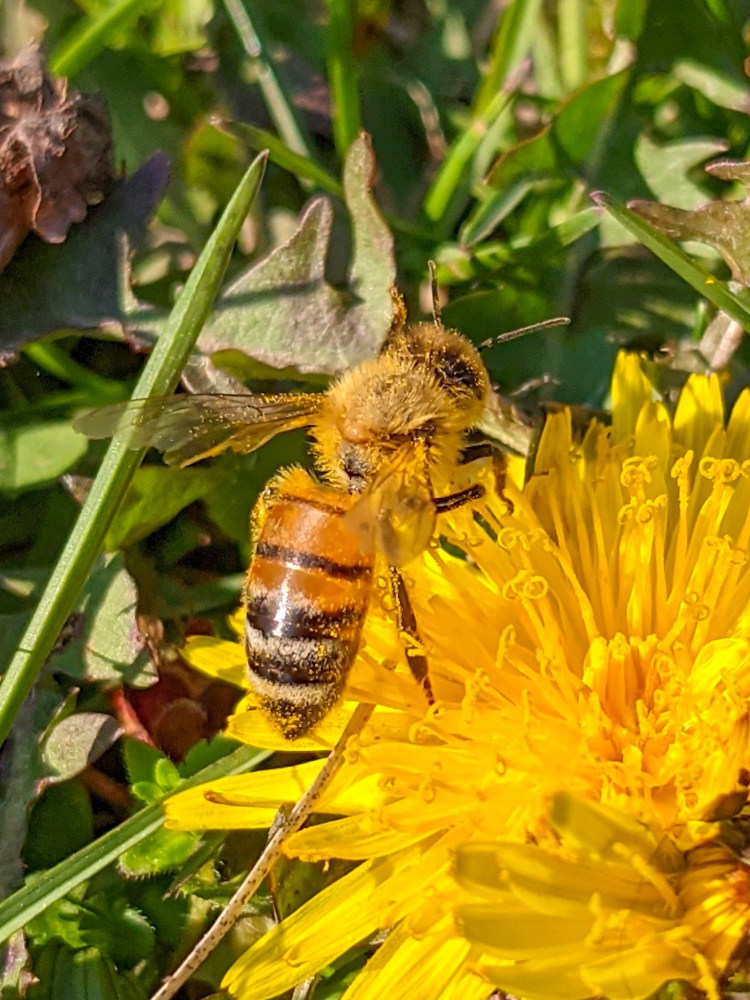 While there are many different kinds of bees who make honey, the Italian Honey Bee is the most popular in North America and here at Casa Quirk we have 3 hives that are home to tens of thousands of bees. We are located next to large natural prairies and clover fields with plenty of floral variety available for collection. The bee pictured above was collecting dandelion pollen from our yard in early spring – there were plenty of dandelions to visit this year! The color of honey is largely dependent on the flowers the bees visit, usually the lighter the color the more mild the flavor. Darker honey will have a more intense flavor.